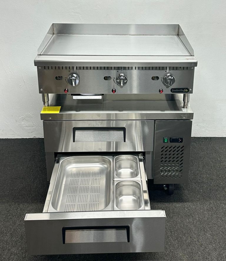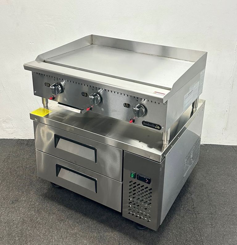 FOODSVILLE COMBINATION: NEW Gas Griddle On Double Drawer CHILLED Chef Base