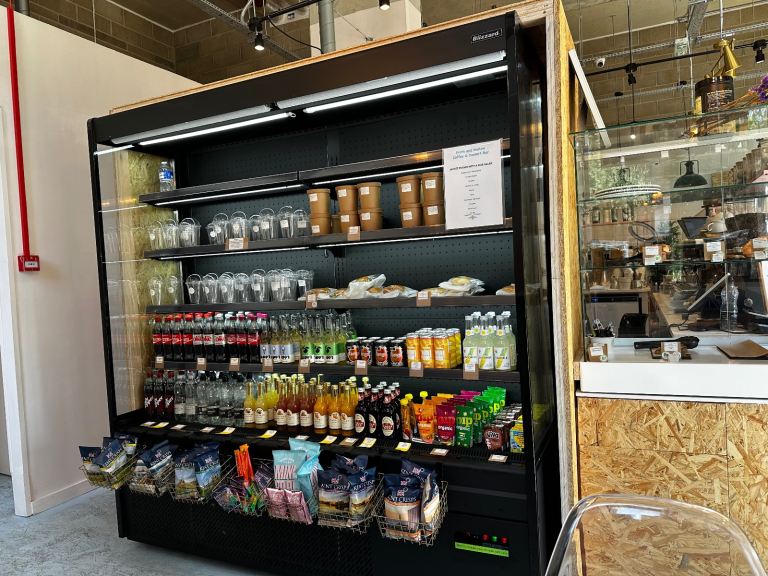 Open display fridge with shelf