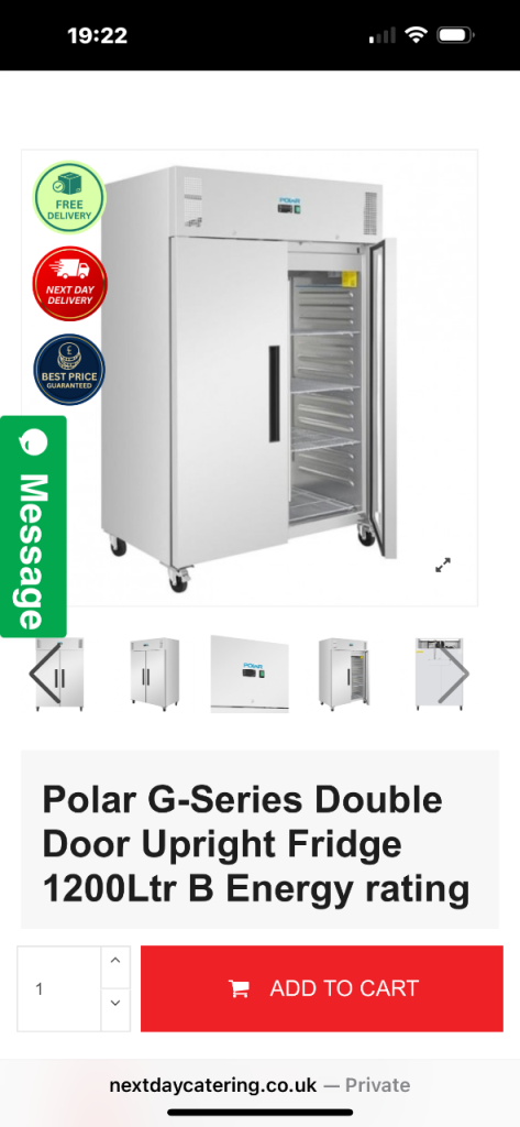 Polar G-Series Double Door Upright Fridge 1200Ltr B Energy rating [SKU PG594]