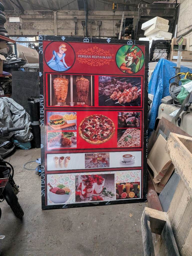 For sale a fully functional LED Menu Lightbox made from 3mm Dibond, sizes 1300x2000x100mm, 2 LED light strips installed, no power supply. Can show all working. Flickering is from faulty power supply, can be shown with same effect on other LEDs strips. Unit is still wrapped, but has been used as you can see. All in good condition.
