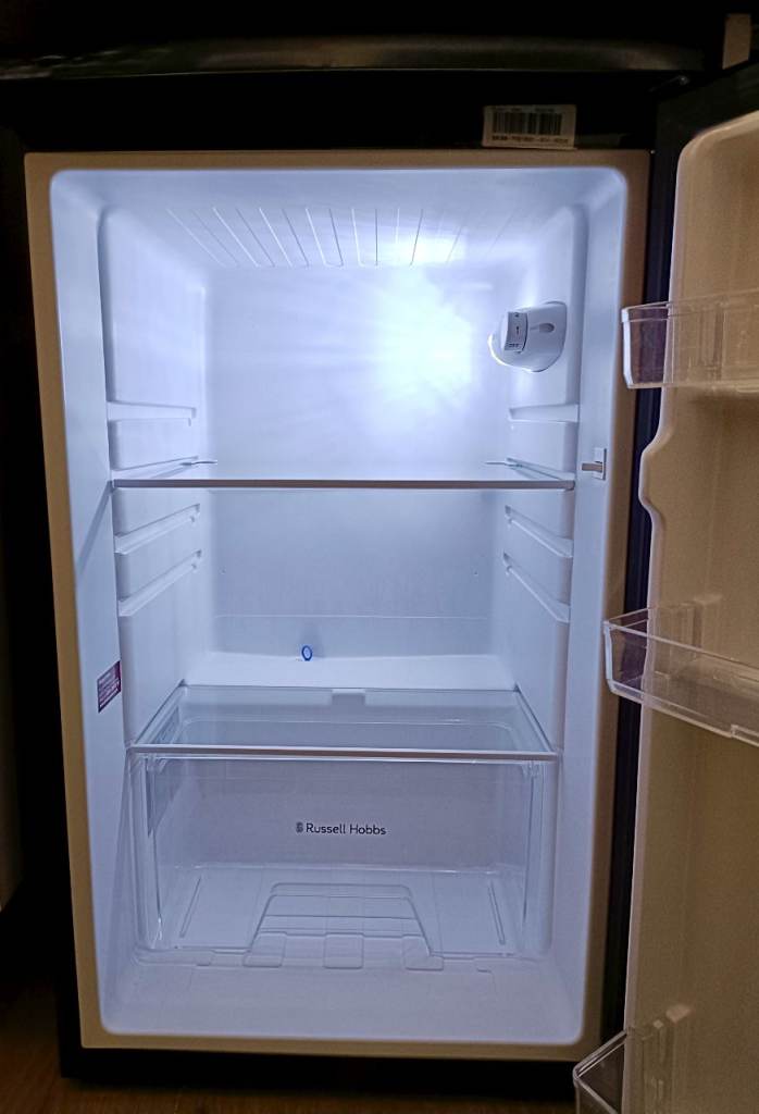Selling a black Russell Hobbs fridge (Model: RHUCLF2B). This is a FRIDGE-ONLY model, meaning 100% of the 112L capacity is usable storage—no wasted space with a useless freezer box.