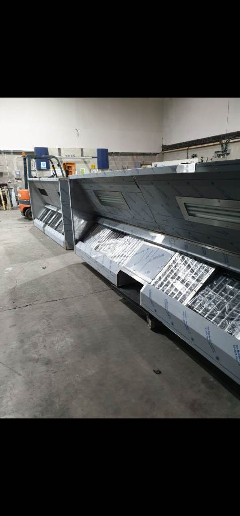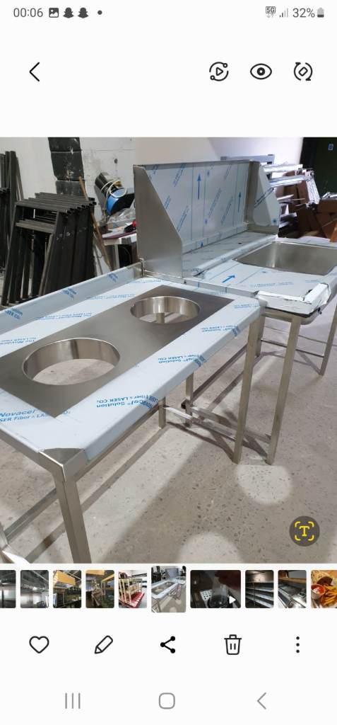 Stainless steel catering equipment canopys cladding. Tables sinks shelving wine racks and bars.