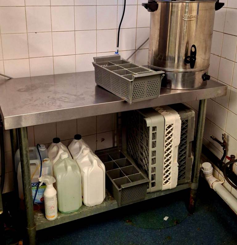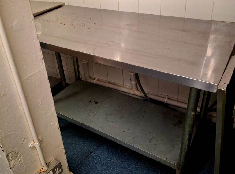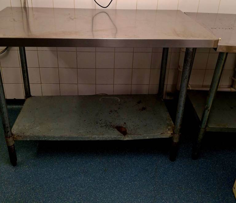 4 stainless steel kitchen tables,units,counters different sizes.