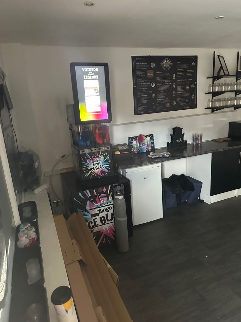 Main item Tango No Sugar including lots off solutions and cups and advertising. Also chest freezers display fridges and under counter fridges till and microwave. Main value in Tango