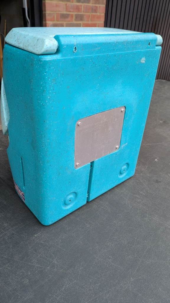 Teal, portable hand washer. It is not electric powered. No broken parts or scratches. Everything works as it should. As is insulated, it keeps the water hot for longer. Very good condition