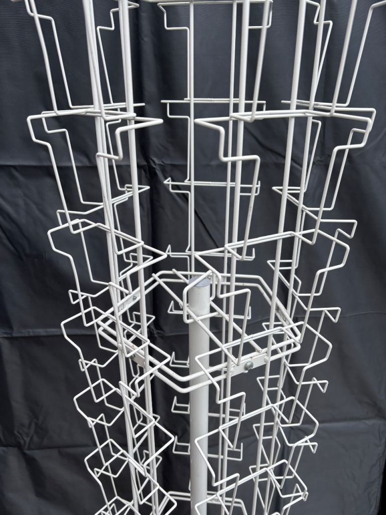 Suitable for using on retail stalls or in shops, this white floor standing carousel is particularly suitable for displaying cards.