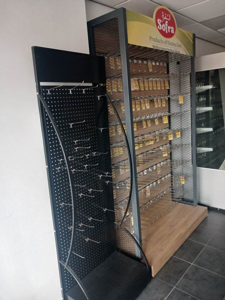 We have one large wooden and one small black metal stand for retail shops including the pegs small and large. They are both in excellent condition price negotiable