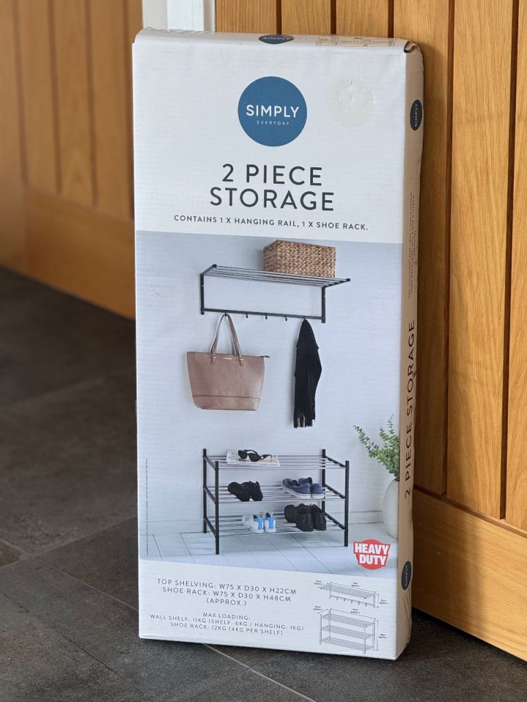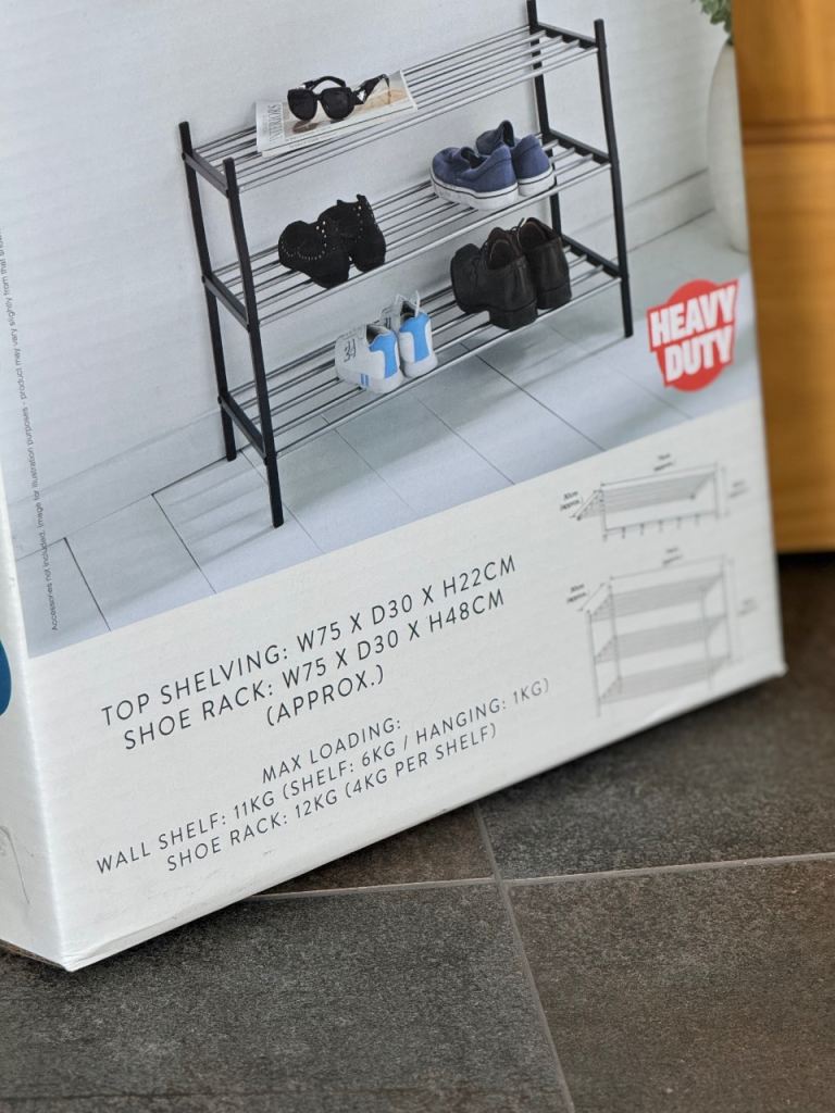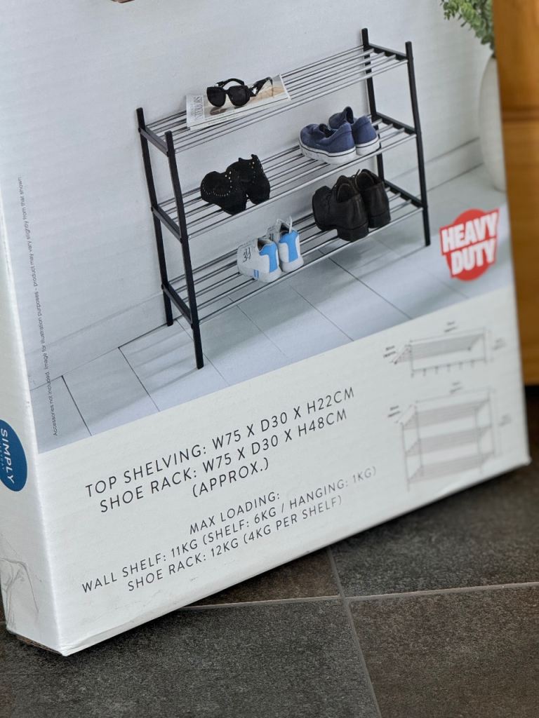 • Includes 1 x wall hanging rail & 1 x 3-tier shoe rack