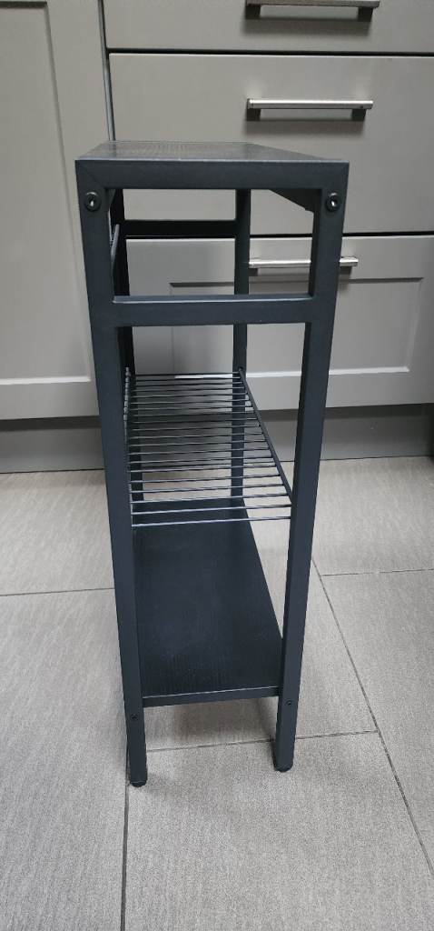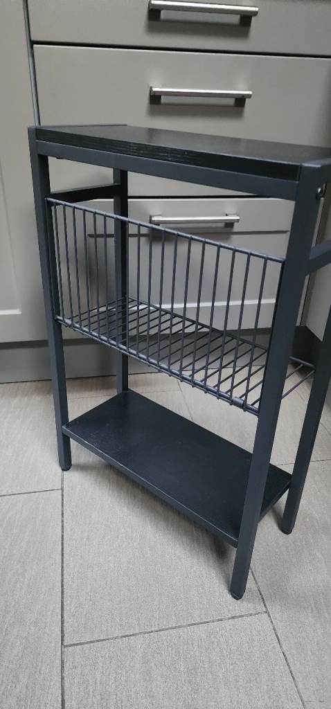 Nice narrow unit to fit a small space. Black wood. Very good condition