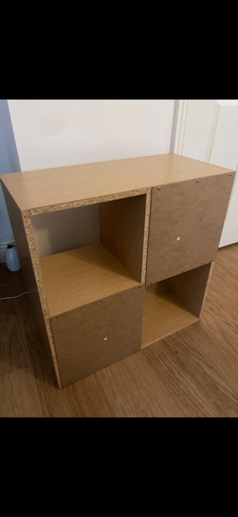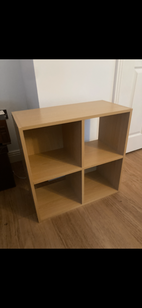 A cube style storage unit divided into 4 identical sized cubes in a light wood/beech colour.