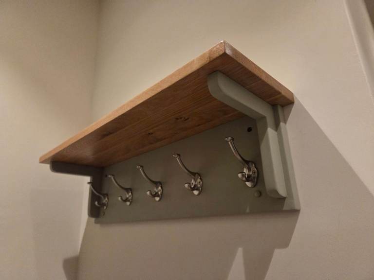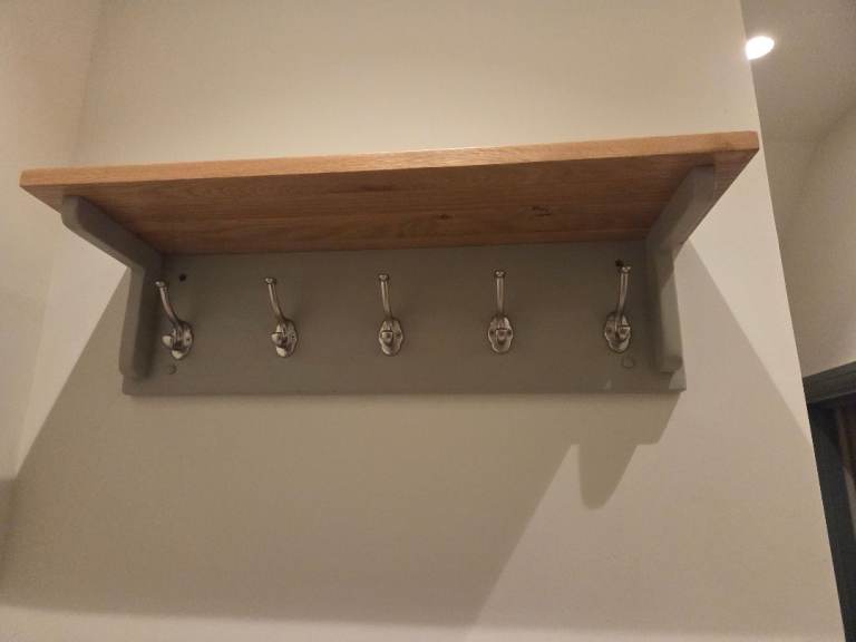 Oak and green coat rack