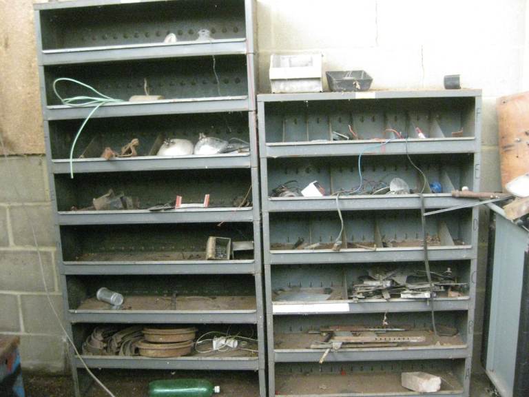 2 BLOCKS OF SPARE PARTS SHELVING . 1 BLOCK 6' HIGH X 3' WIDE X1' DEEP 8 SHELVES. 2ND BLOCK 4'7" HIGH X 3' WIDE X 1' DEEP.