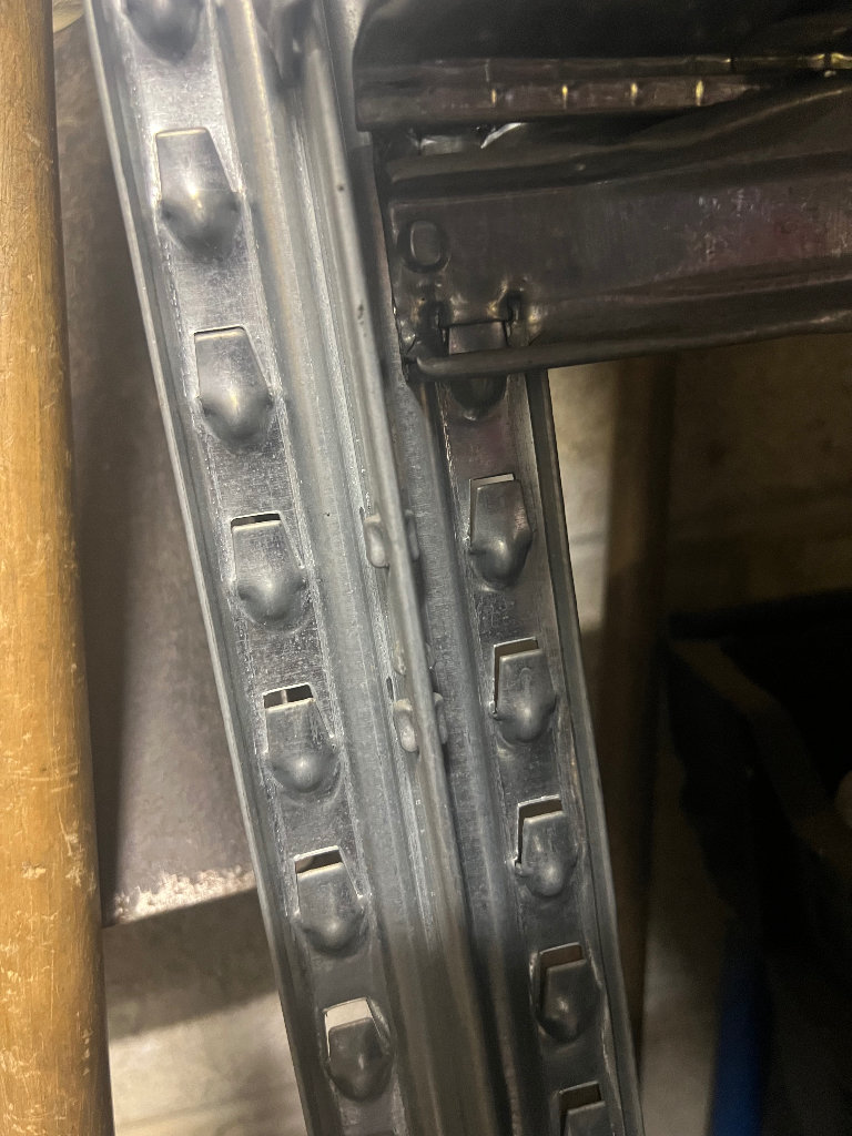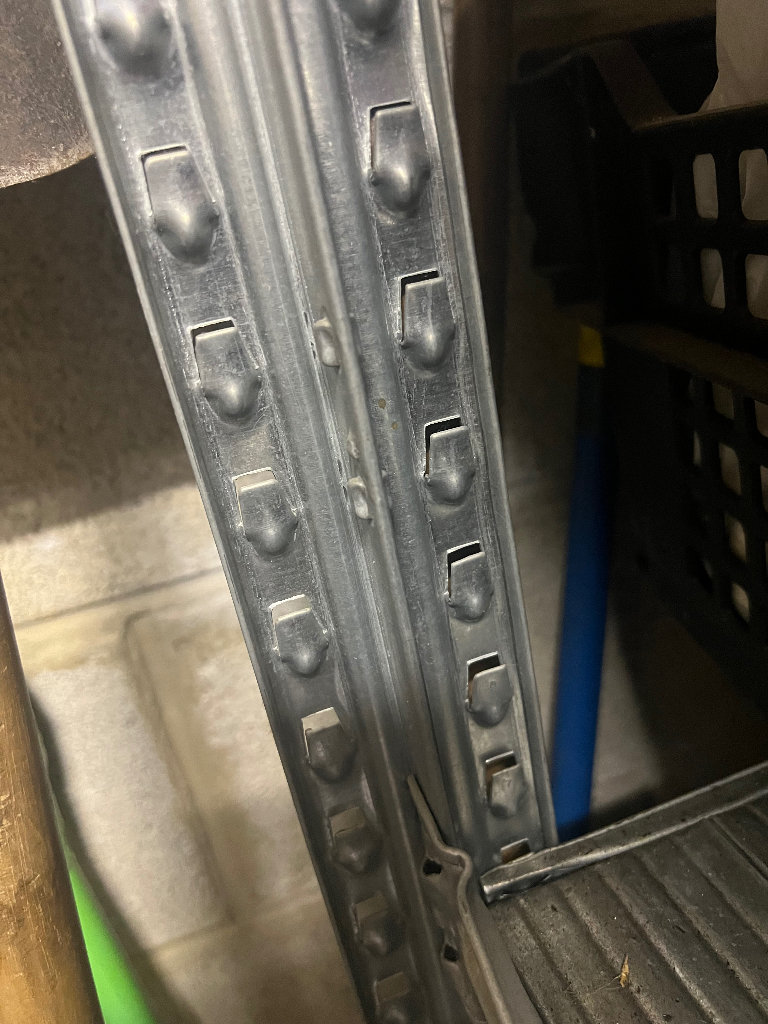 14 bays (15 uprights) with crossbars & shelves. Galvanised steel.