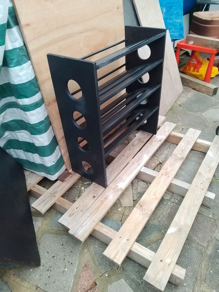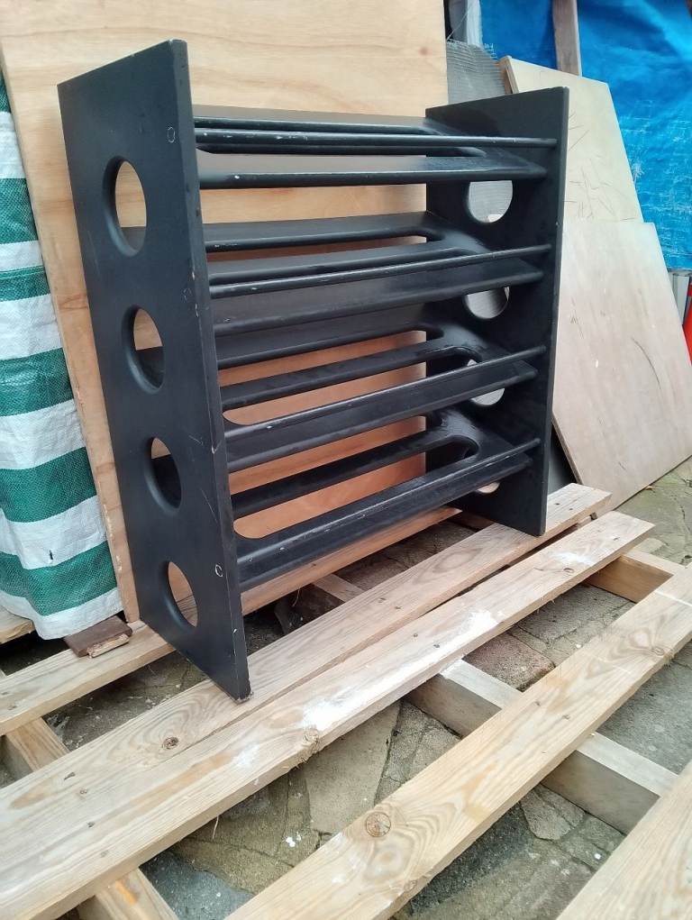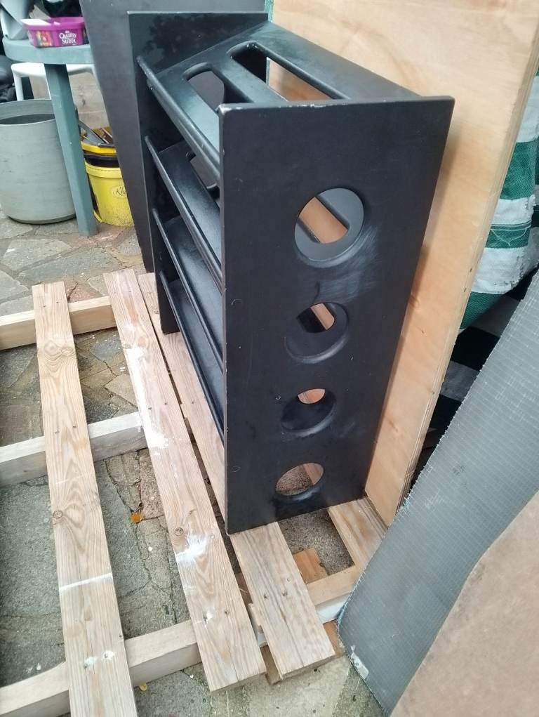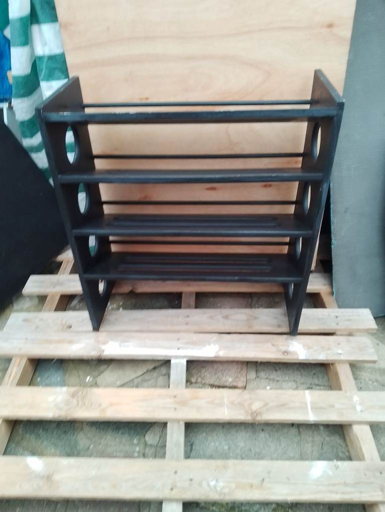 4 tier very strong black shoe rack in very good condition allround spotlessly clean inside and out and in perfect working order size 73w 31d 80h cm. Can deliver text or phone if you prefer.