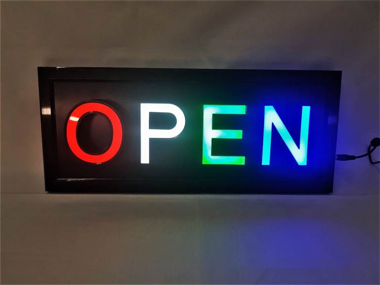 Open Sign Multi Coloured for Indoor Hanging for Shop Showroom Factory Carry Out Restaurant.