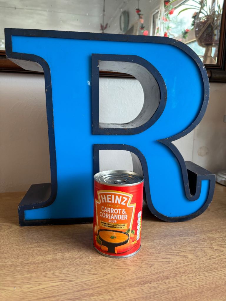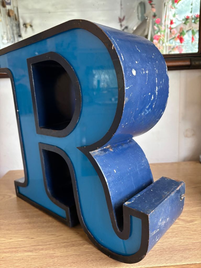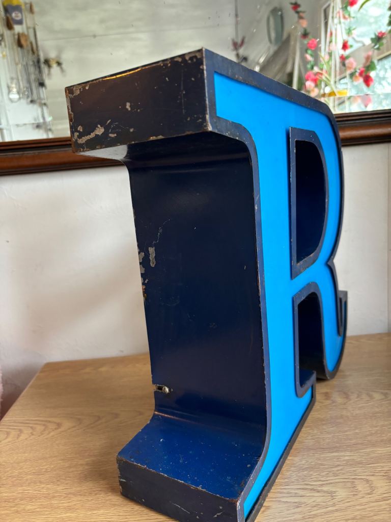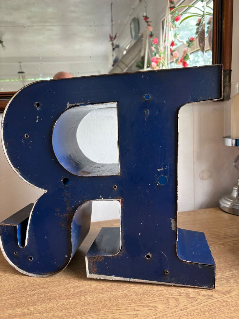 Metal and vinyl letter R was part of a shop sign I was going too turn it into a lamp but won’t get around too it