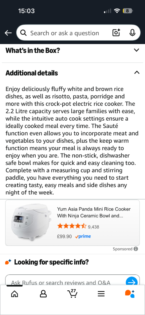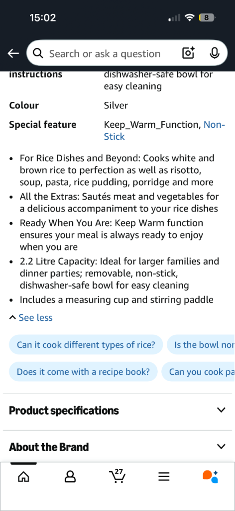 The Crock-Pot 2.2L Rice Cooker is a versatile appliance ideal for cooking rice and steaming vegetables for up to 5-6 people. With its sauté and keep warm functions, you can easily prepare a variety of dishes with this convenient cooker. The trusted Crock-Pot brand ensures quality and reliability, making it a must-have for any kitchen.