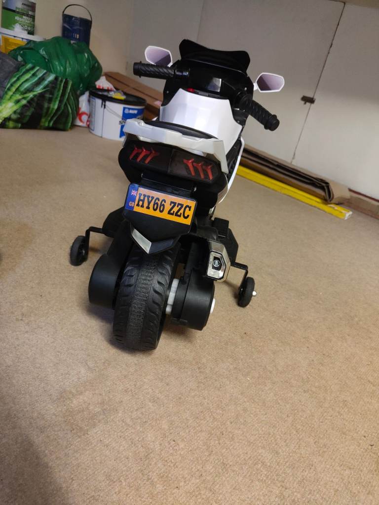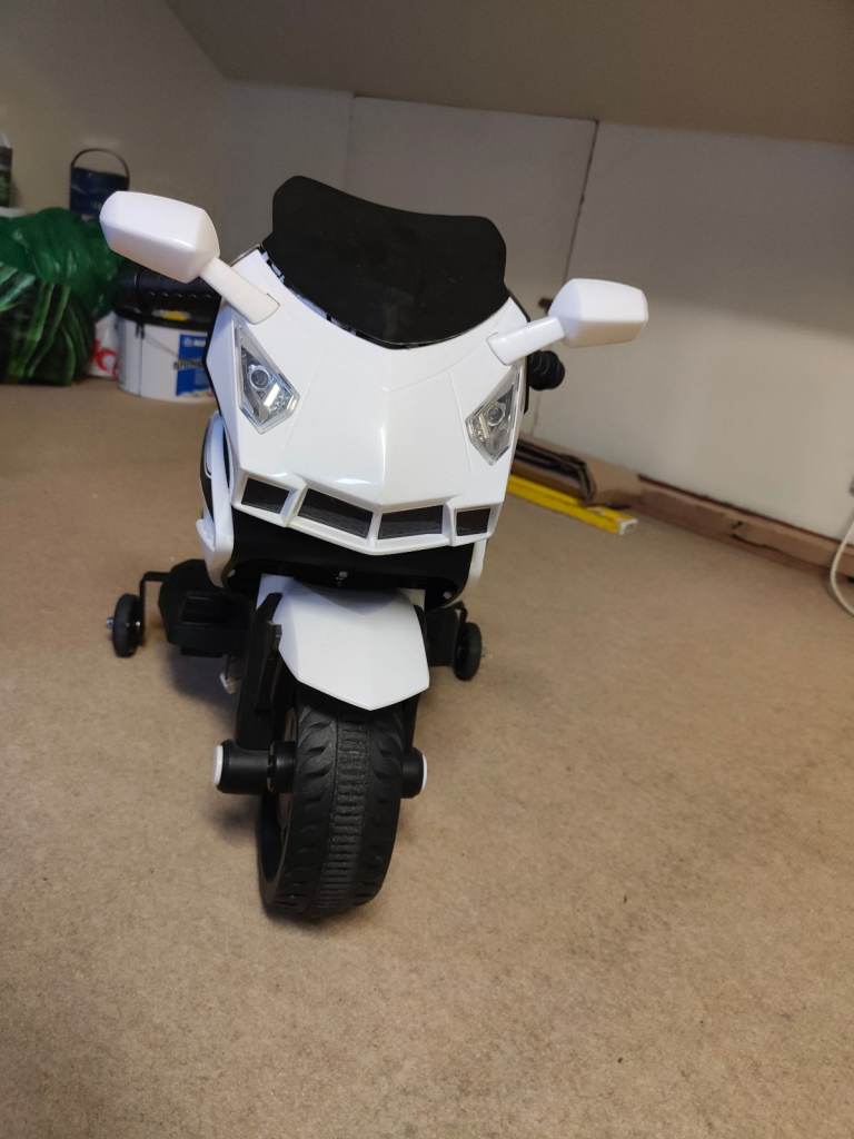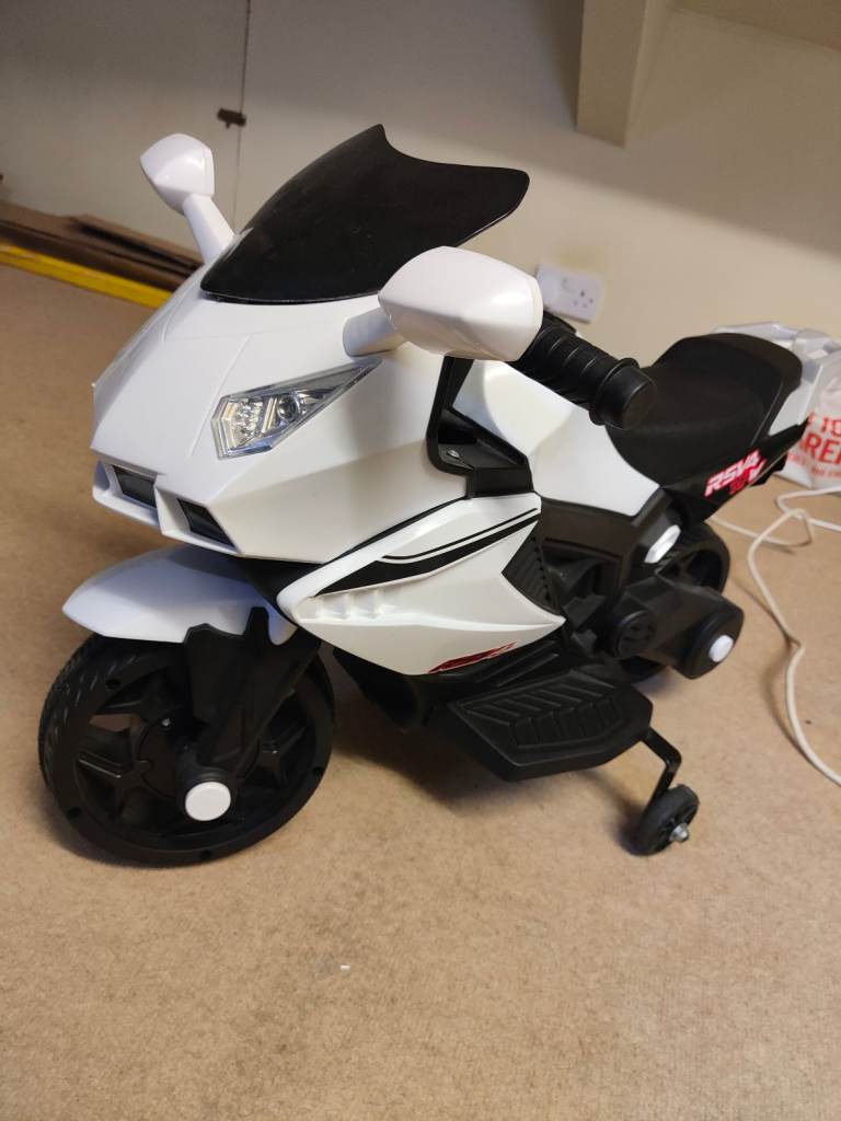 Child's ride on battery powered motorbike only used a handful of times. Comes with battery and charger