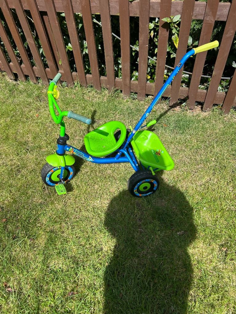 Childs tricycle, Good condition. Can be used for 3 age stages, Baby restraint with push along handle and footrests. Push along handle for 2nd stage then full pedalled trike.