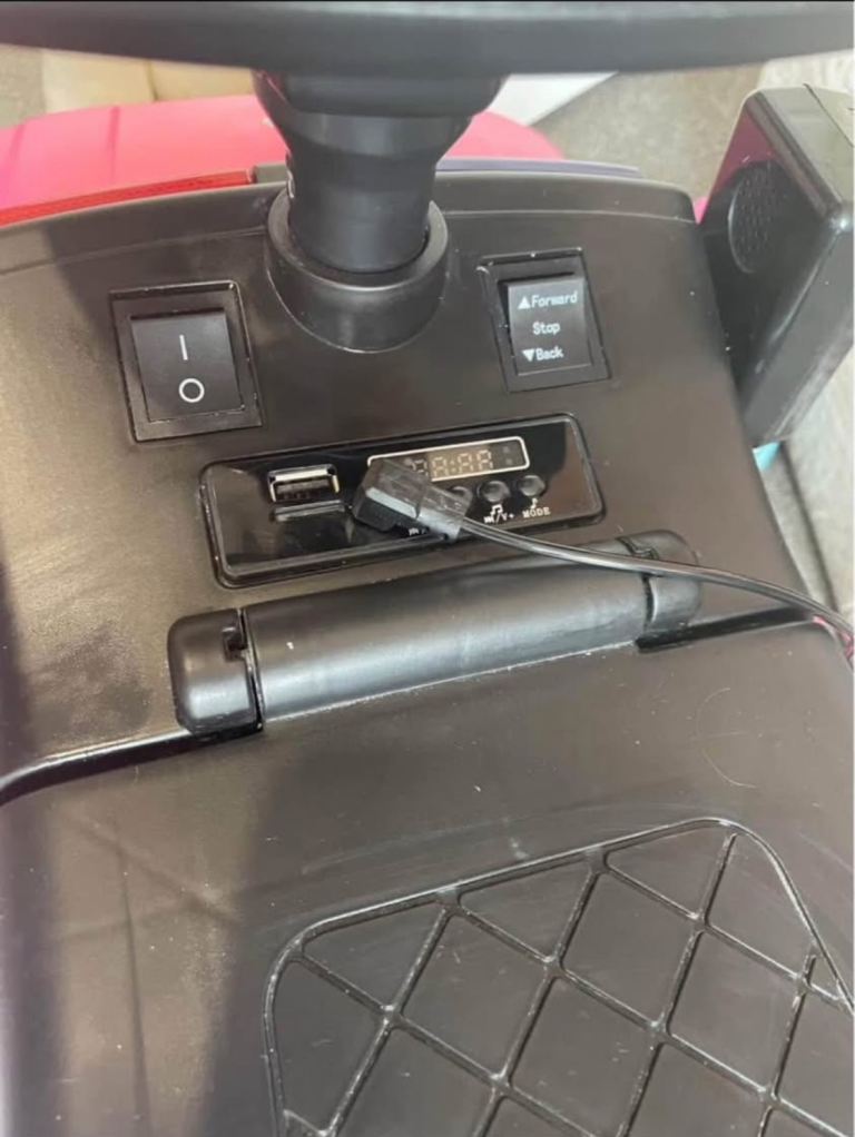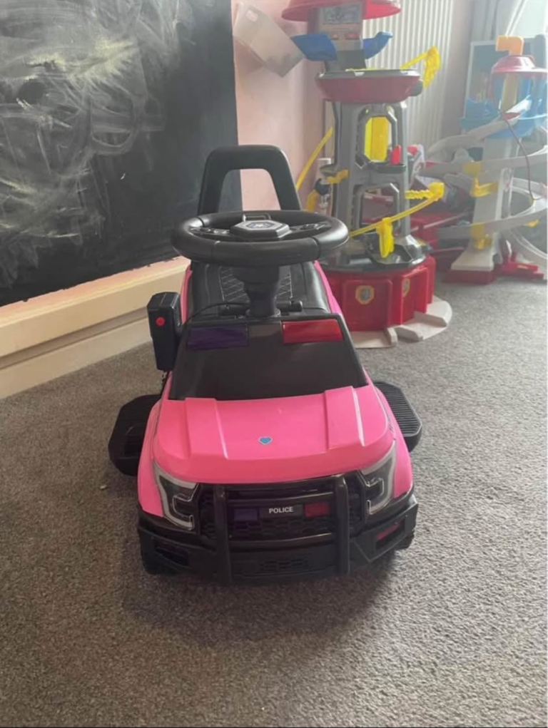 Plays police siren, can connect to a phone to play music but does also have random music on it already.
