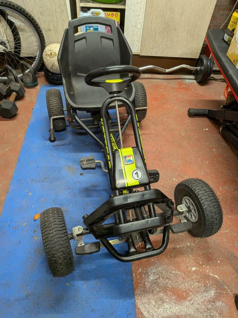 Blue hoverboard with kart. Only used once approximately 5 mins. Slight crack on handle. Comes with boxes. Original cost me £400