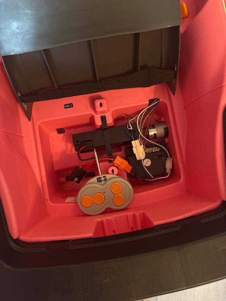 Electric ride on still in working order. Comes with charger and remote to allow you control. Fully charged and can be seen working.