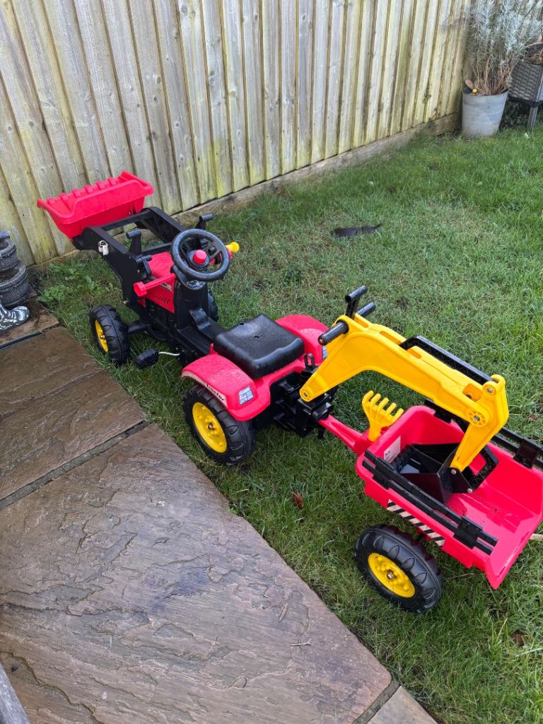 Ride on tractor with trailer and digger arm