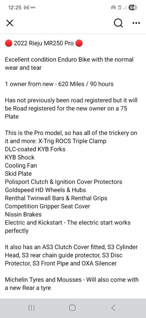 Posting for 1+ yearsRieju mr 250 pr0
