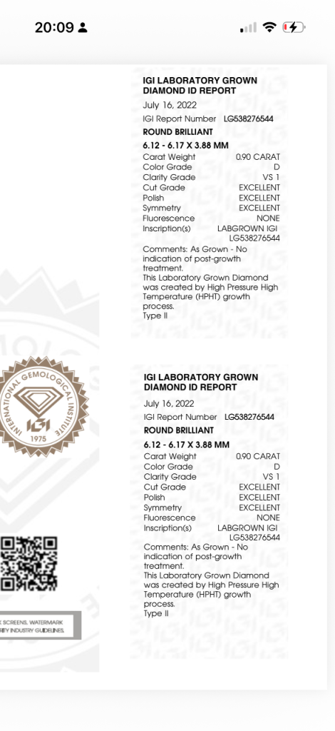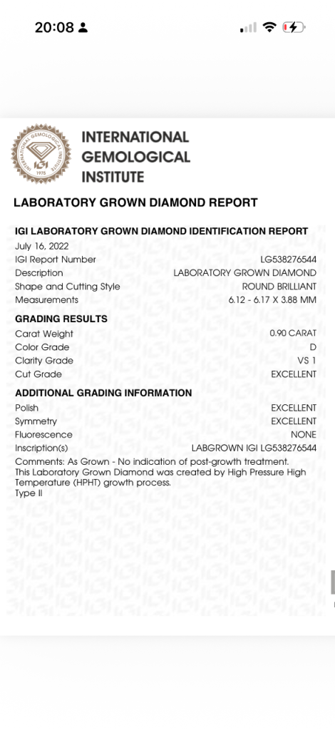 HPHT grown diamond (Type II) with no post-growth treatment.
