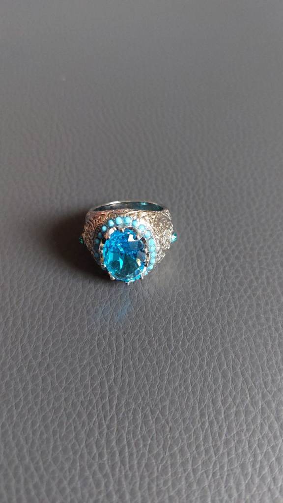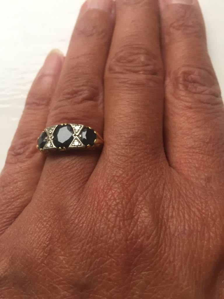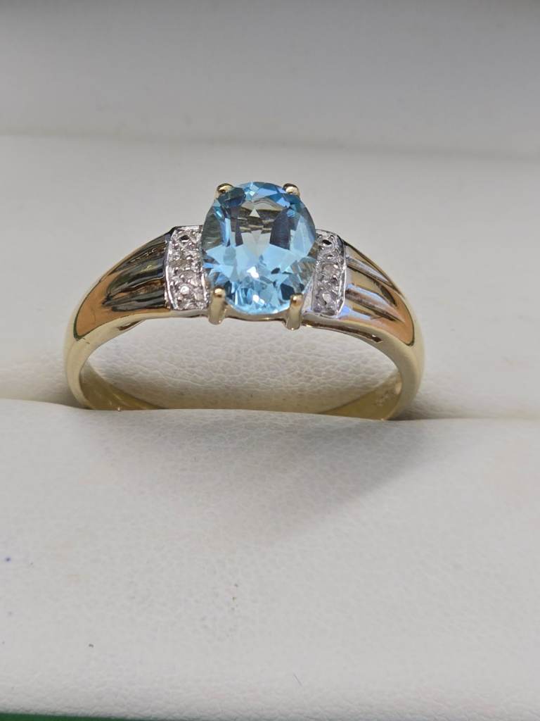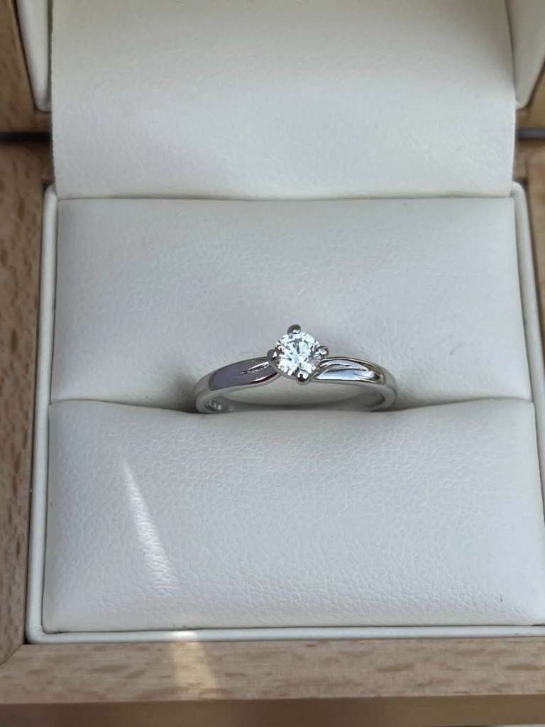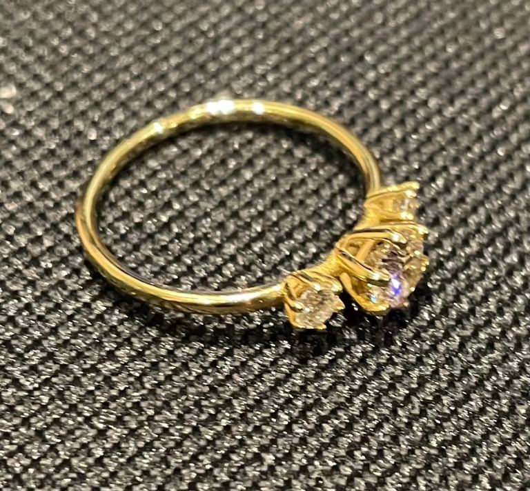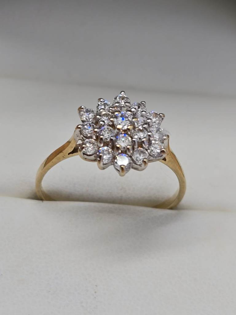 Original,Never used, no scratches. 14ct Yellow Gold. Originally worth £3800. Total natural Diamond weight of 0.70ct (0.5ct for middle and 0.1ct for each small diamond).