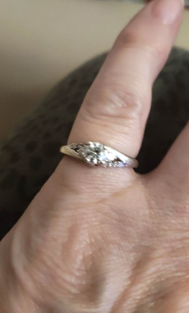 Posting for 3+ years18K Pure White Gold Engagement Ring .45ct Main diamond – Size L