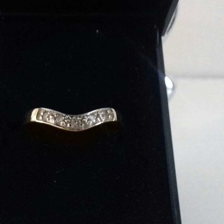 9ct Yellow Gold & Diamond Half Wishbone Ring size P