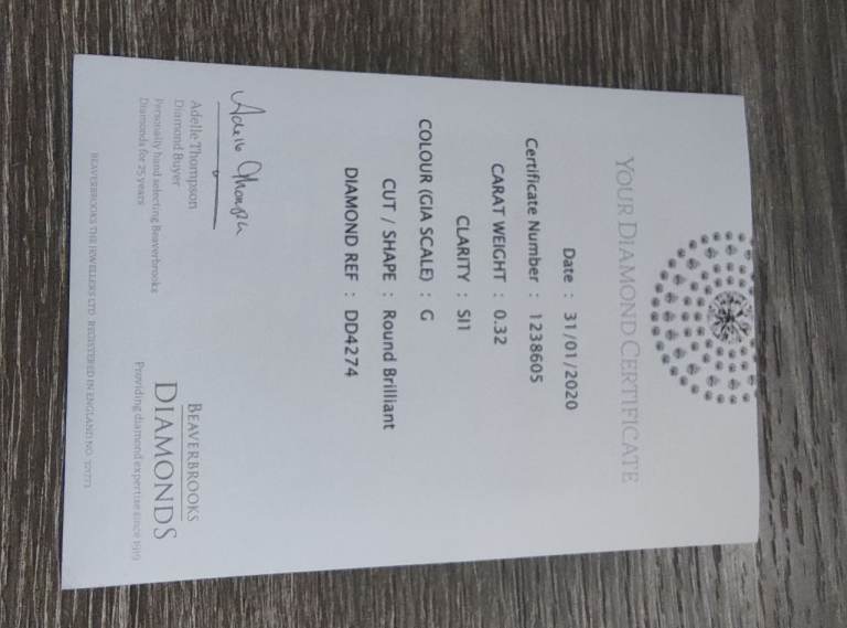 SUPPLIED IN ORIGINAL BOX WITH DIAMOND CERTIFICATE AND ORIGINAL PURCHASE RECEIPT OF £1600