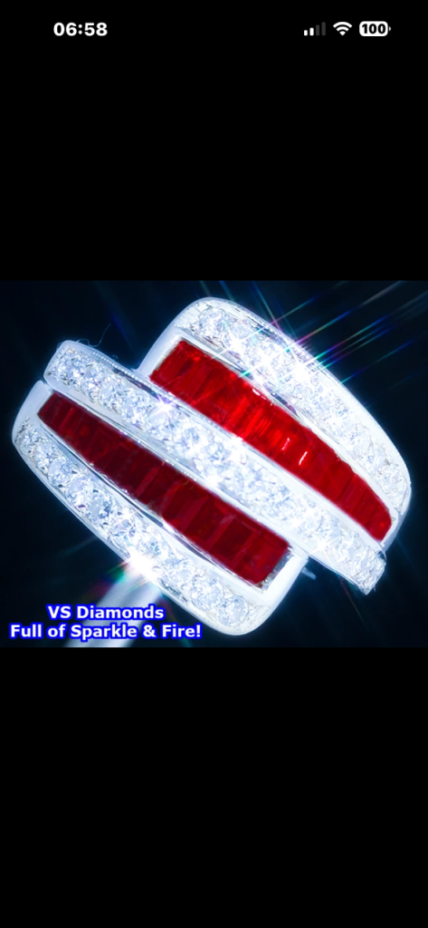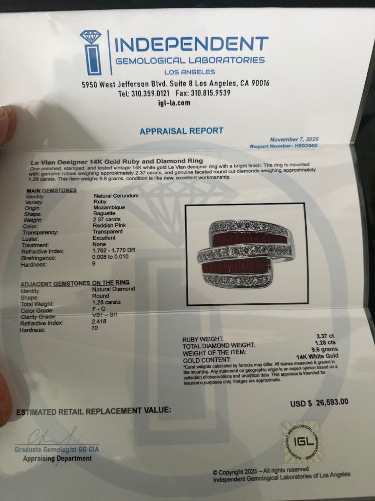 Beautiful ruby diamond white 14 ct solid gold ring IGL certificate included
