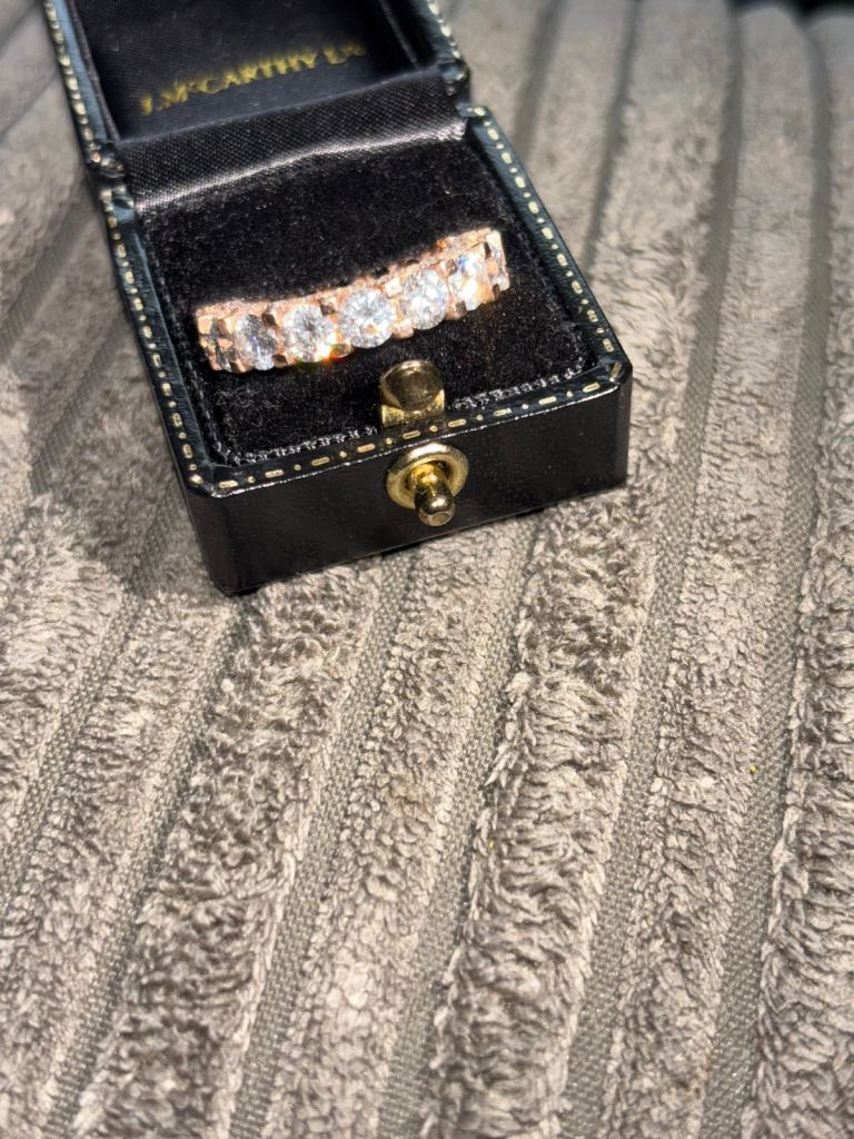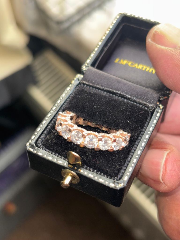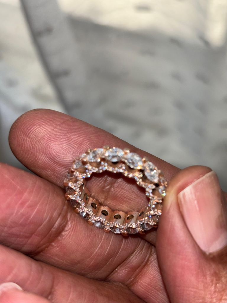 Stunning Full Eternity (LAB) ring with 35 point diamonds all the way round, with diamond edging. Set on beautifully crafted 9ct Rose Gold. Very solid and well made. Brilliant quality ring!!! BARGAIN… Retails for 4k!!!