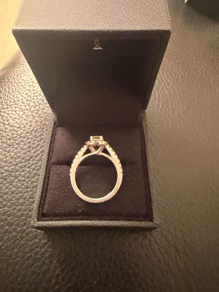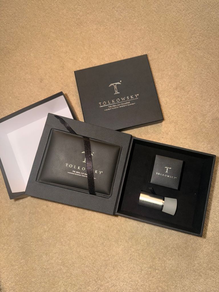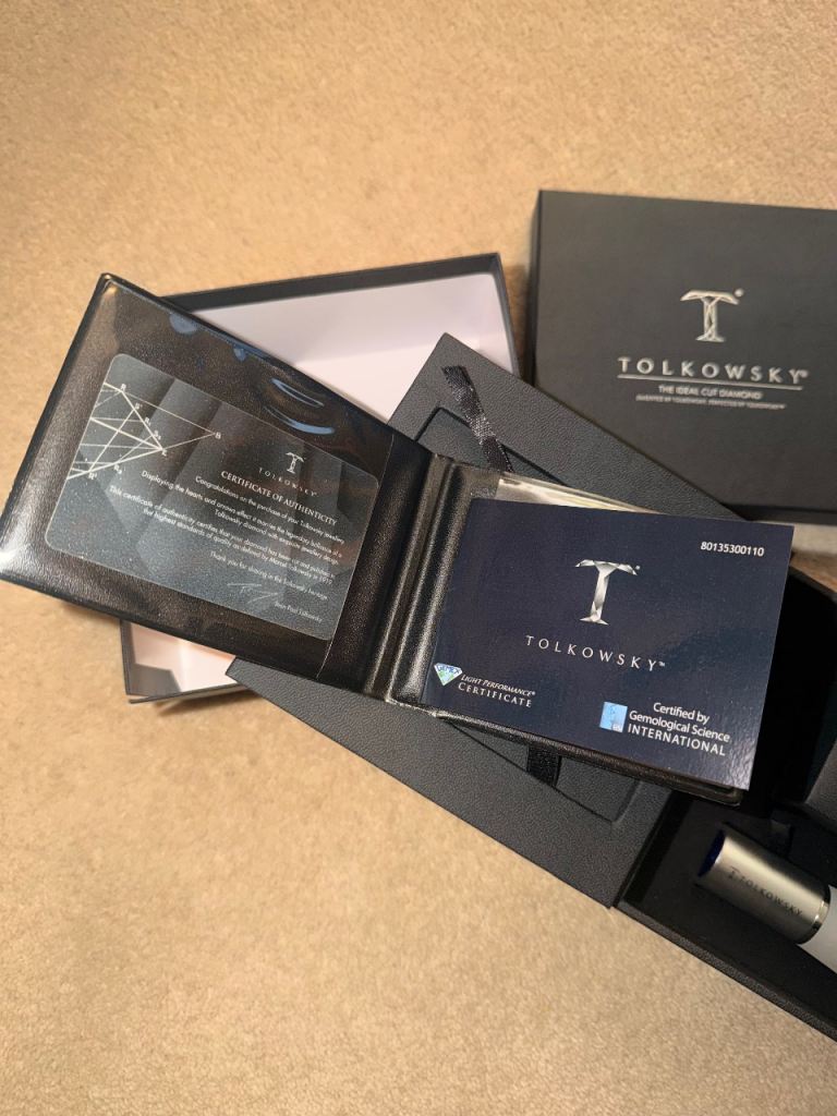 Tolkowsky half carat diamond ring with certificate of authenticity and box, perfect condition, size K but can be sized up or down. Platinum band. Cost £6000 new.