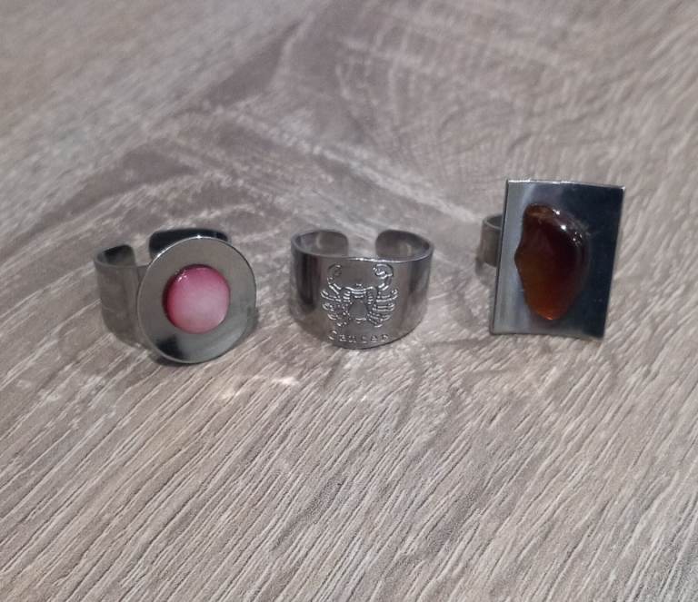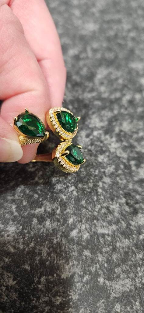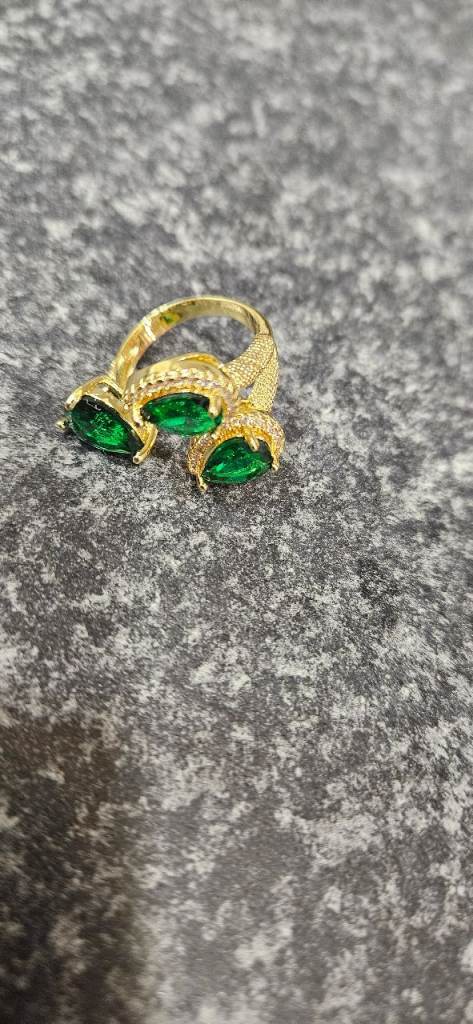 Ladies beauiful Steel Green Zircon Flower Rings adjustable for size pm me