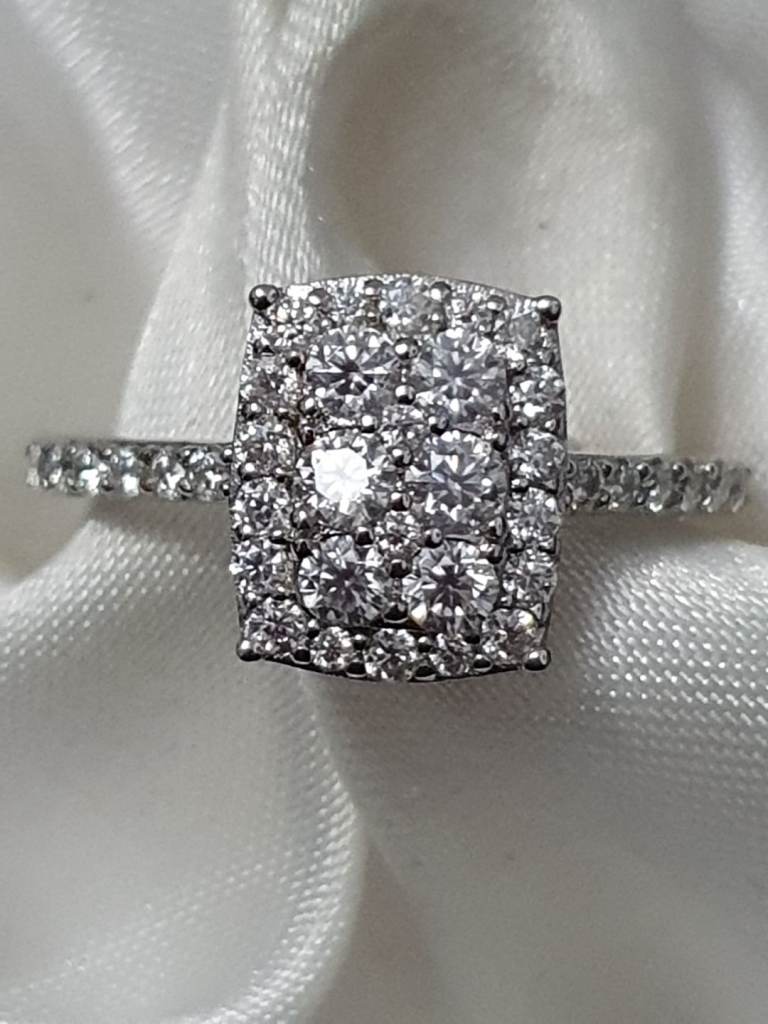Like A Diamond Cluster White Mossanite Ring Size P Sterling silver 925 Platinum Overlay New