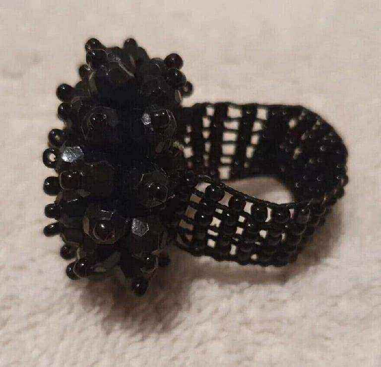 ◼️I am having a massive clear out of my personal items/belongings and being sold is a Ladies Oversized Black Lucite Beads 3D Flower Cluster Stretch Ring.