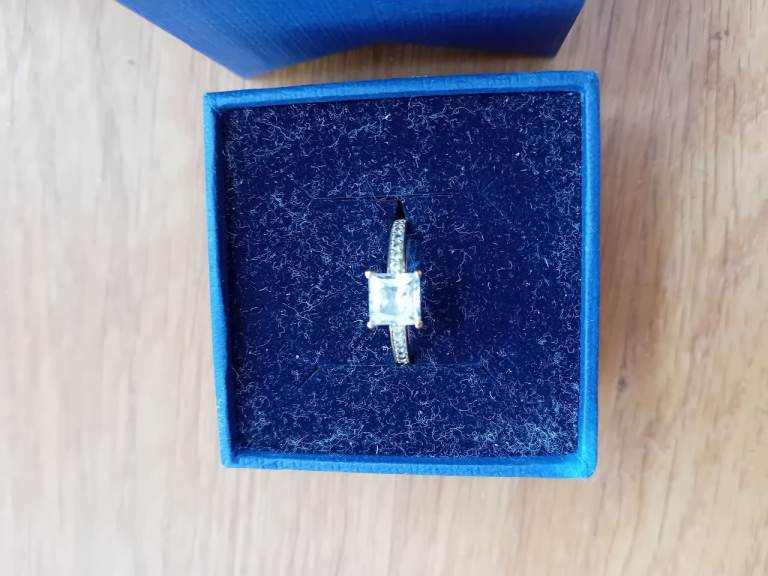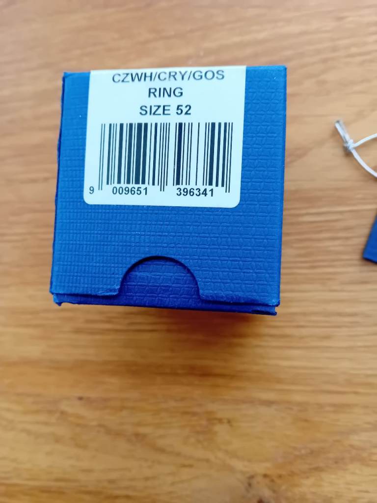 Swarovski ring. Solitaire central stone and stones on the ring's 'shoulders'. Marked as size 52. Boxed, never worn.