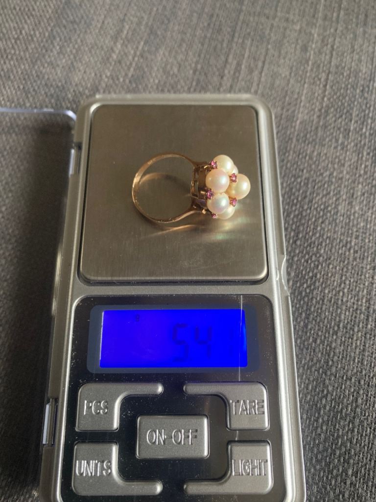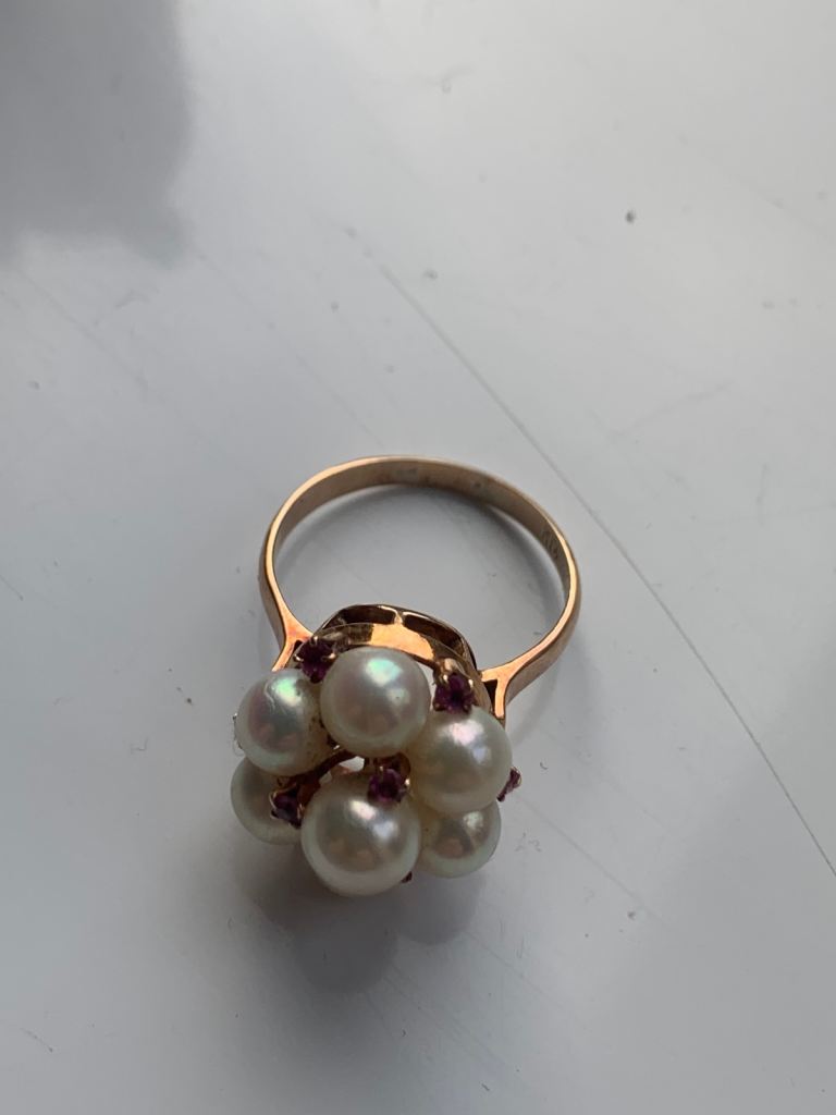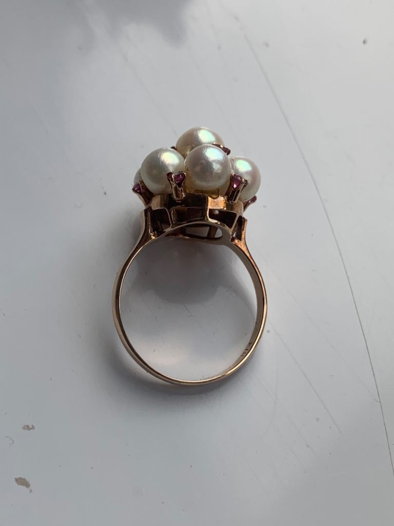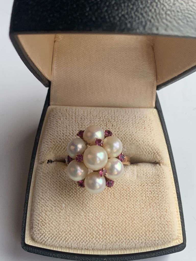 Vintage 14k pearl and ruby cluster ring