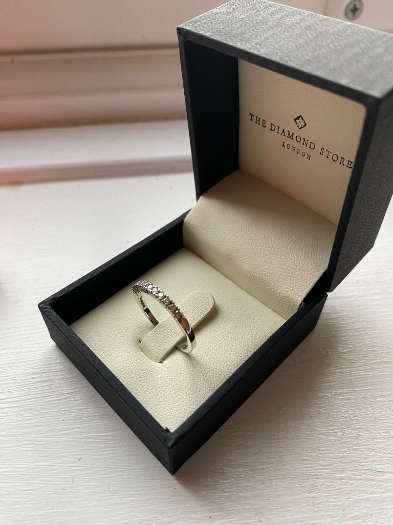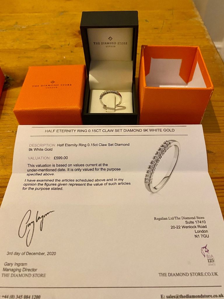 White 9k Gold Ring - Half Eternity with Claw Set Diamonds