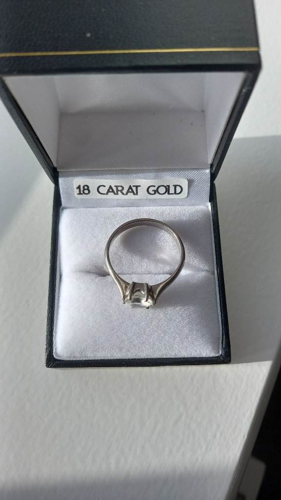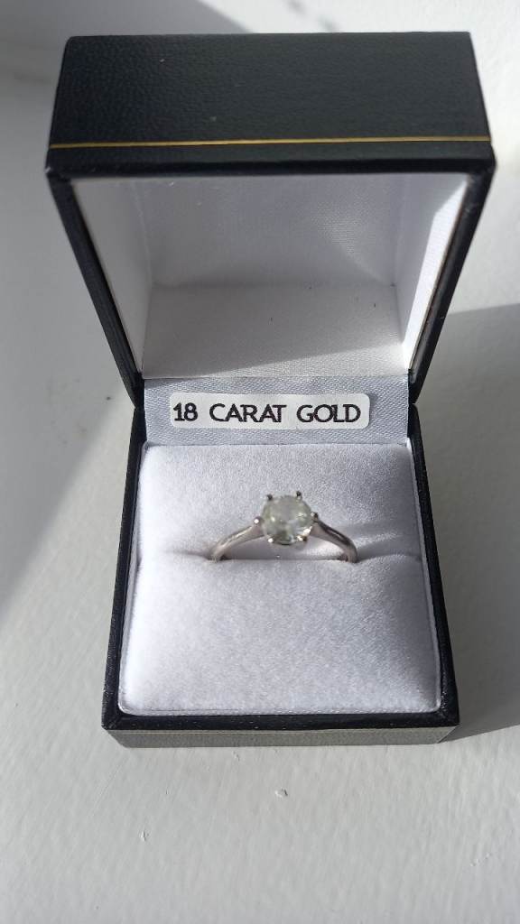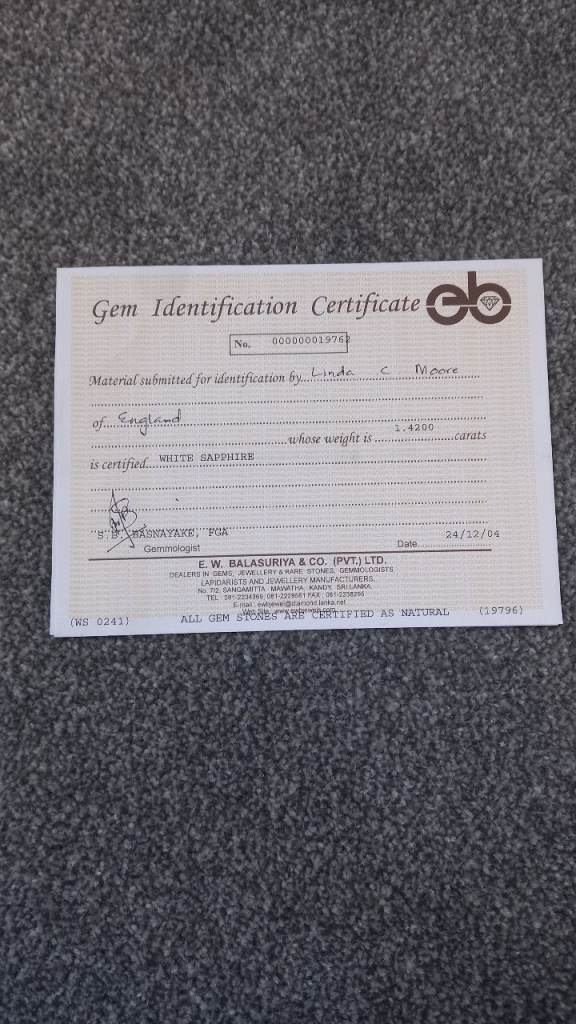 For sale is an elegant solitaire sapphire ring. Set in 18ct white gold, with a 1.42ct white sapphire, which is certified as a natural stone and not synthetic.