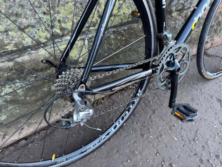 Shimano Tiagra/105 mixed drivetrain, shifts cleanly. Wheels run true, brakes solid. Overall condition is good used condition with cosmetic marks only - no cracks, no issues, ready to ride.