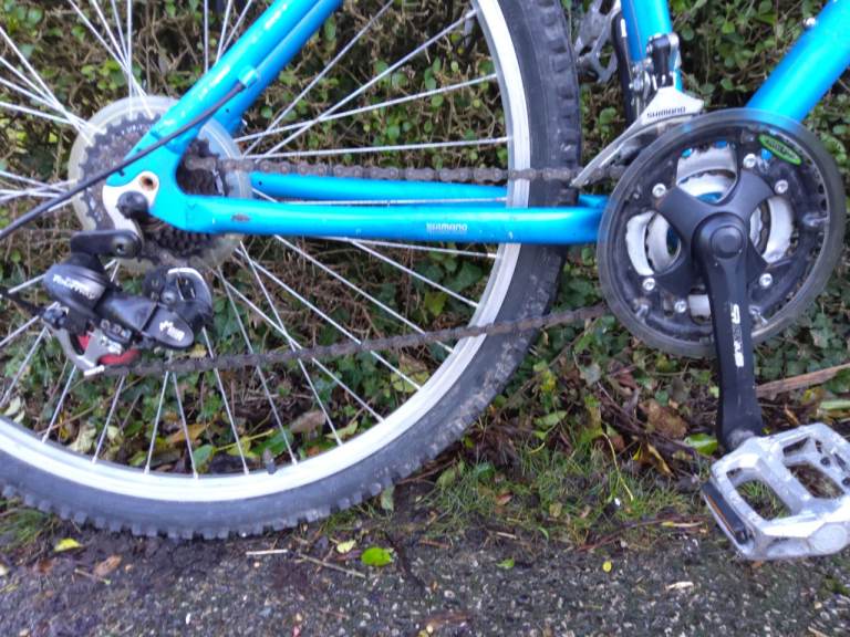 Needless to say as a used bike there are some signs of use but all purely cosmetic and I'm pleased to say there is virtually no rust. It uses good Shimano Revoshift gripshifters which all work well, likewise the brakes. All the bearings, headstock, crank and wheels are good. The tyres have good tread and the tubes are airtight.