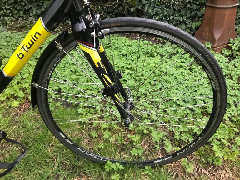 B'Twin road bike in decent nick, rides well and gears shift smoothly.