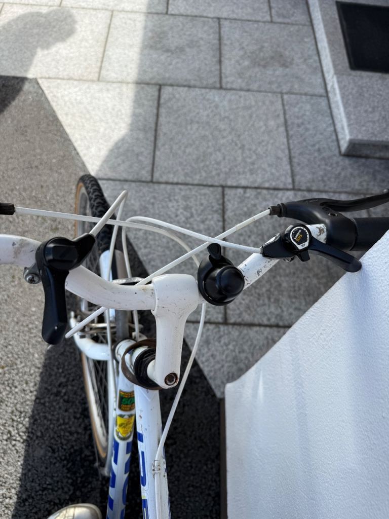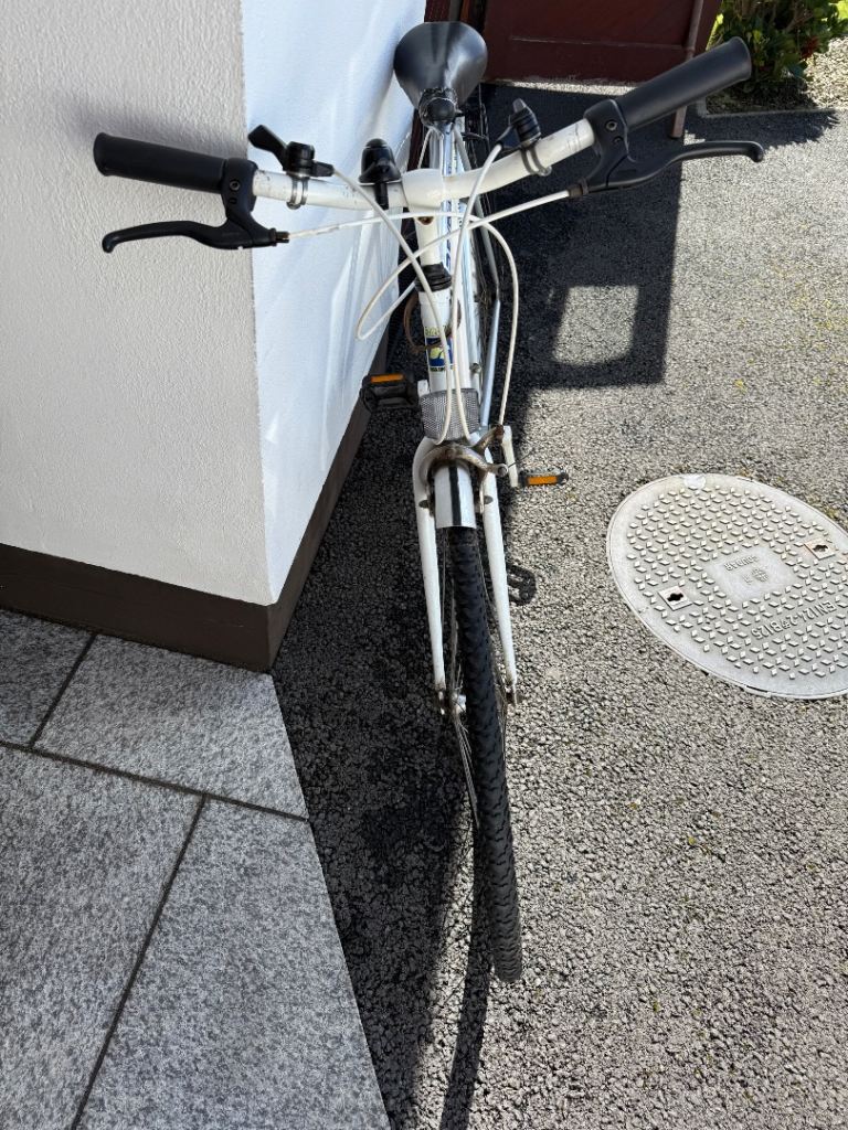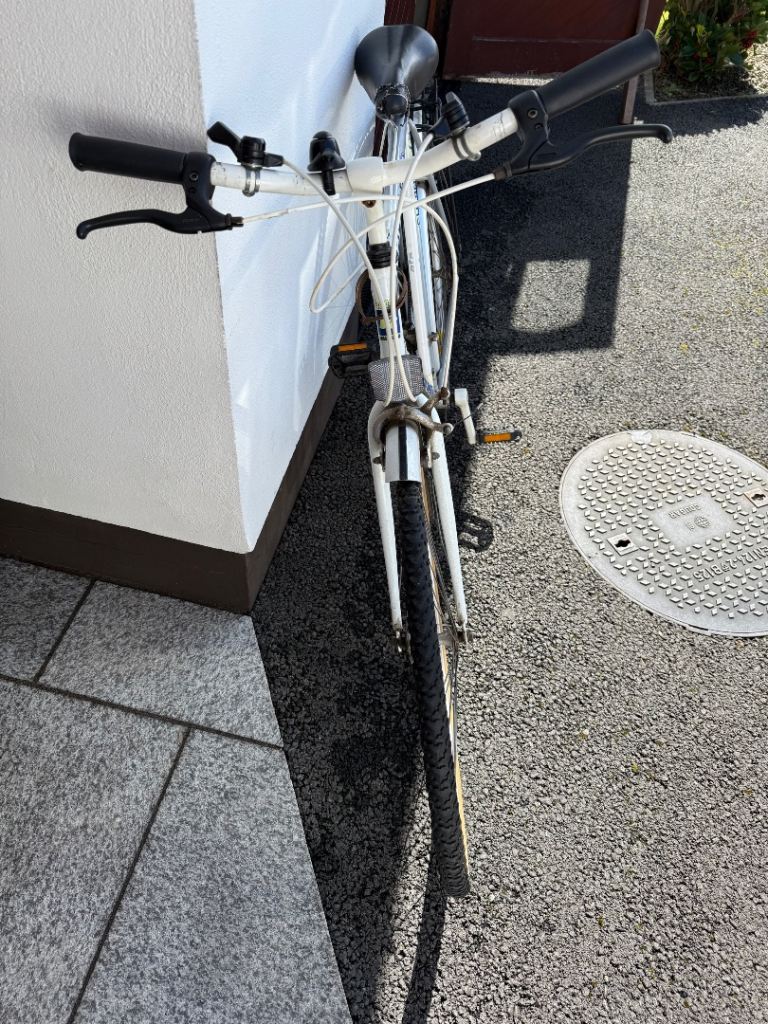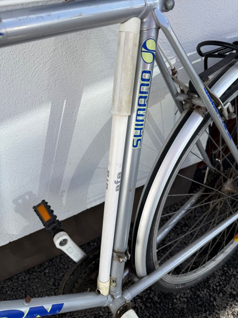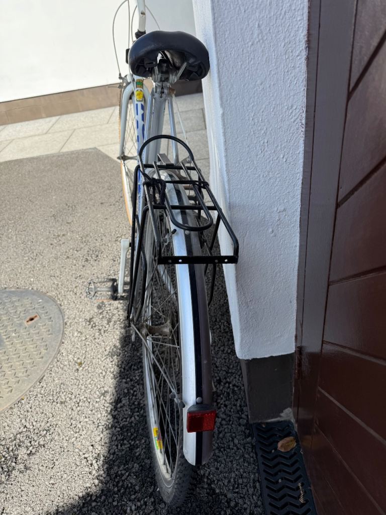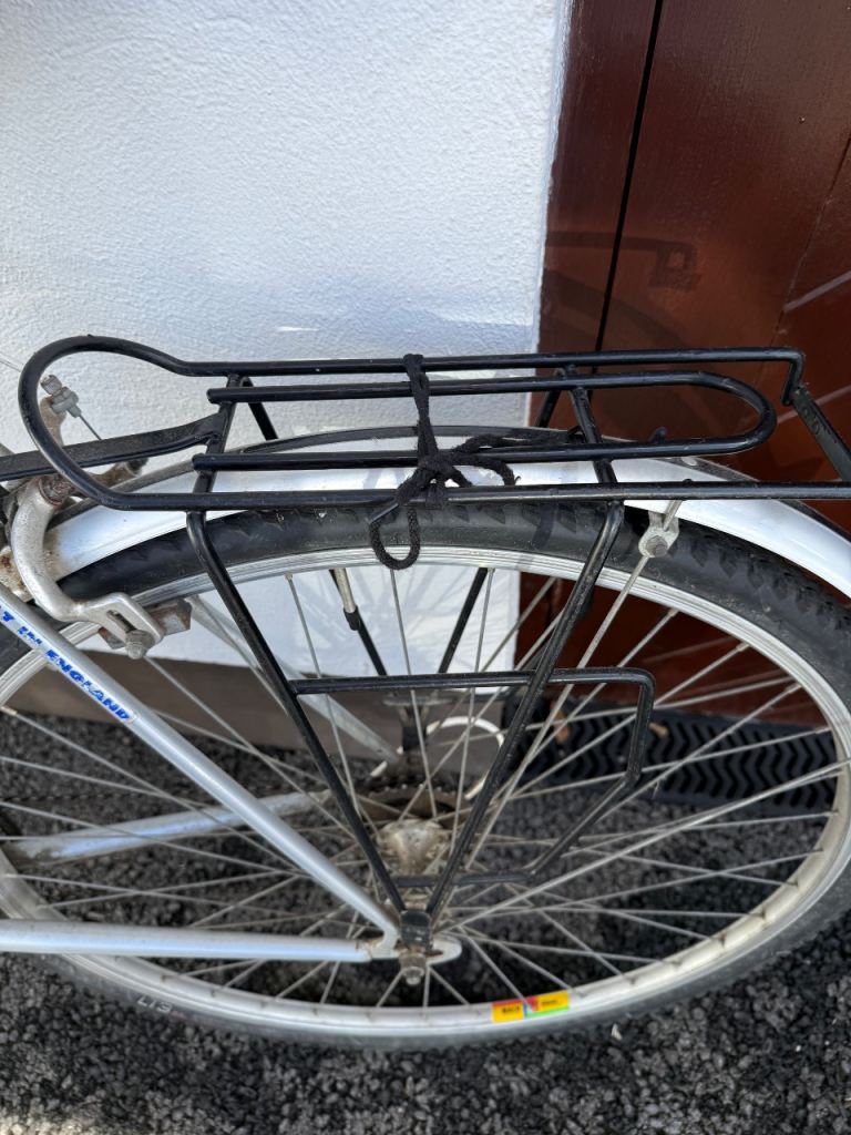 12 gear men’s bike with rear luggage rack, front and rear reflectors, bell, bike pump, padded seat.