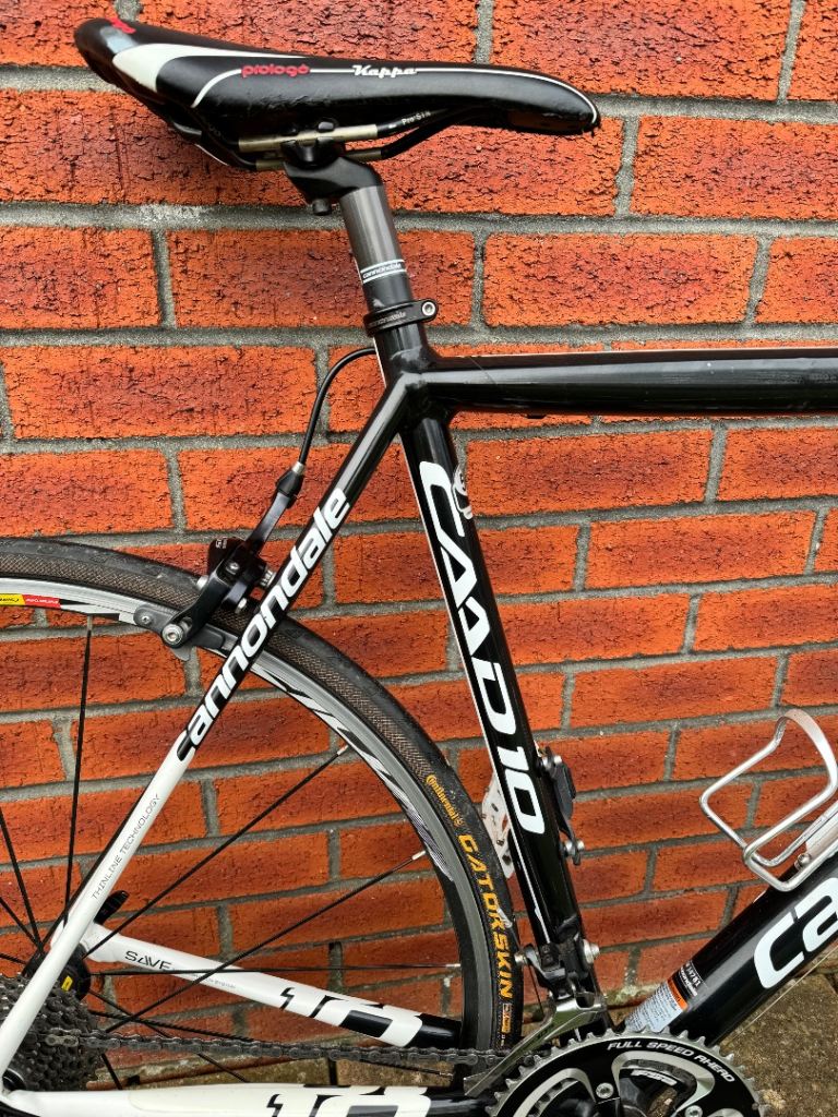 Cannondale caad 10, frame size 56, very good condition, mavic aksium wheels, continental gator skin tyres,Shimano 105 gearset, kappa saddle.