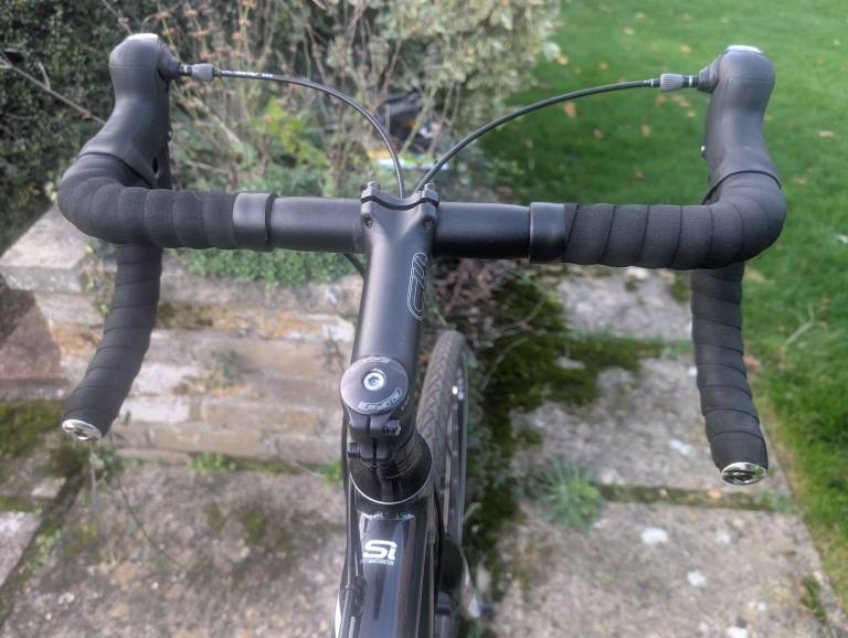 Shimano Sora groupset.46-36T crankset, 9 speed 11-32T cassette. Cycling Weekly says ofShimano's Sora: