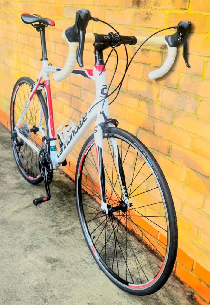 This amazing new condition cannondale road bike , its aluminium frame, carbon fibre road bike ,shimano sora groupset 3×9 speed